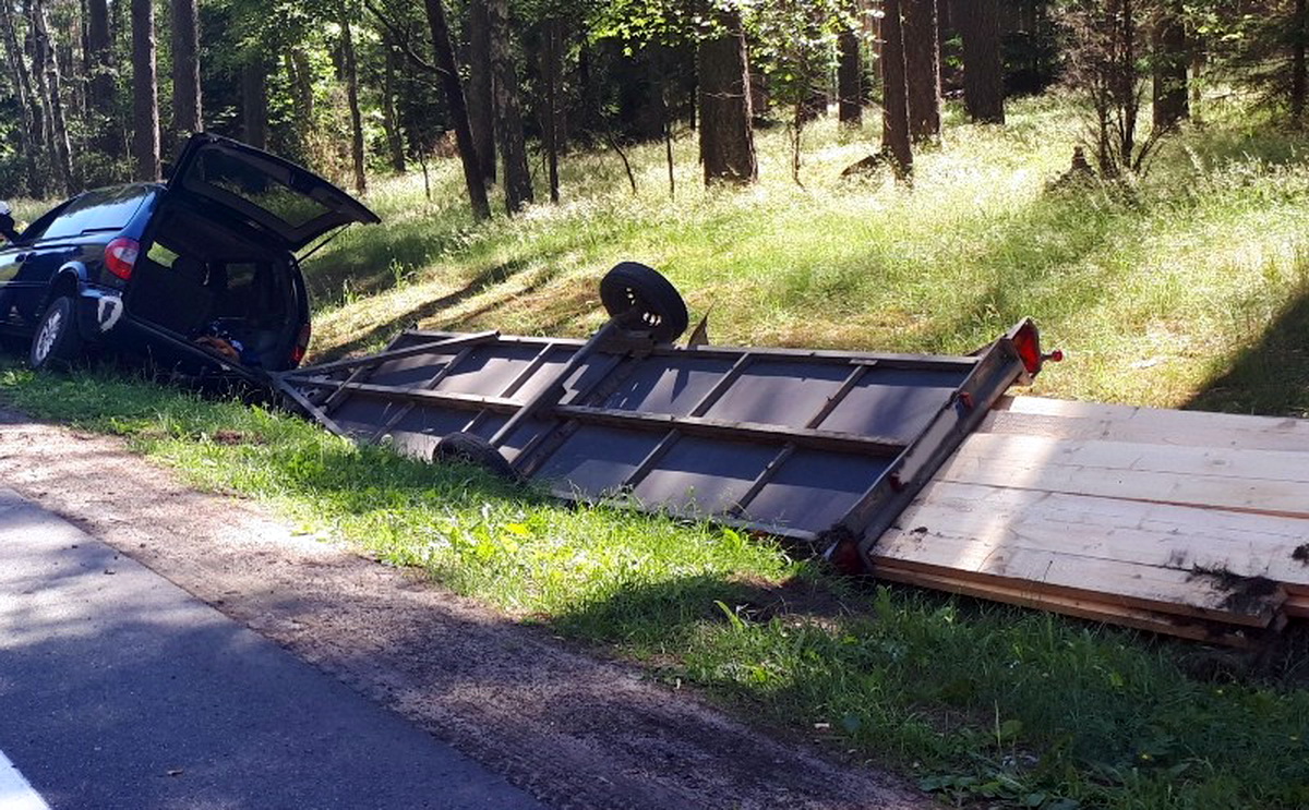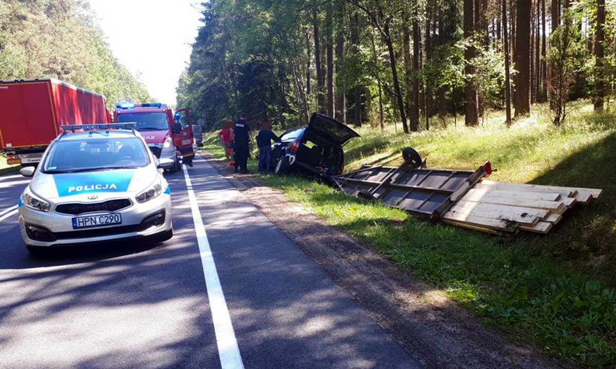 7 czerwca 2018 14:37W pewnym momencie na jezdnię wbiegło zwierzę leśne. Prowadzący samochód, mieszkaniec Torunia, gwałtownie odbił kierownicą chcąc uniknąć zderzenia. Auto z przyczepką zarzuciło, zestaw zjechał na przeciwny pas ruchu i obracając się o 180 stopni wylądował w przydrożnym rowie.