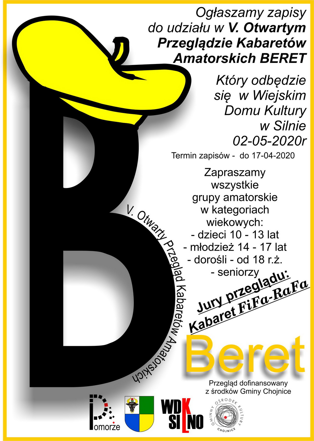 Gminny Ośrodek Kultury i Wiejski Dom Kultury w Silnie zapraszają na zapisy i wzięcie udziału w V Przeglądzie Kabaretów Amatorskich „Beret 2020”. Przedsięwzięcie jest popularyzacją i promocją amatorskiej twórczości kabaretowej.