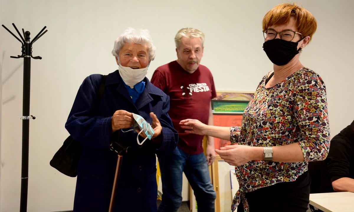 W ChCK akcję szycia maseczek dla seniorów rozpoczęto w piątek. Dzisiaj (27.04.) podczas naszej wizyty w placówce, trafiliśmy na jedną z klubowiczek, która przyszła odebrać swoją sztukę. | fot. A. Zajkowska