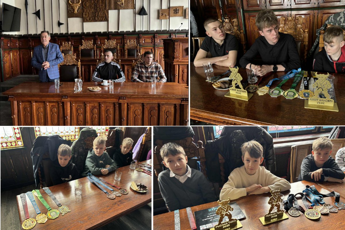 W ratuszu burmistrz spotkał się z trenerami i zawodnikami Centrum Sztuk Walki w Chojnicach. Tym razem również w obecności rodziców. Rozmawiano o mieście i sporcie, a zawodnicy z dumą prezentowali swoje osiągnięcia, medale i statuetki.