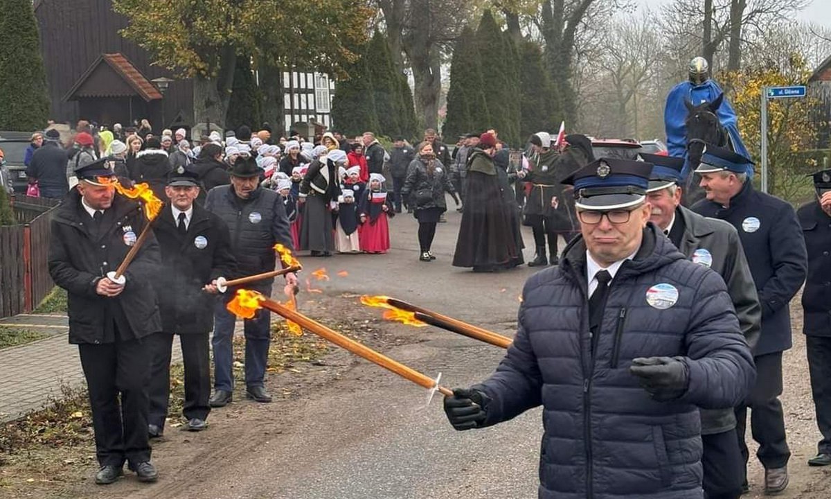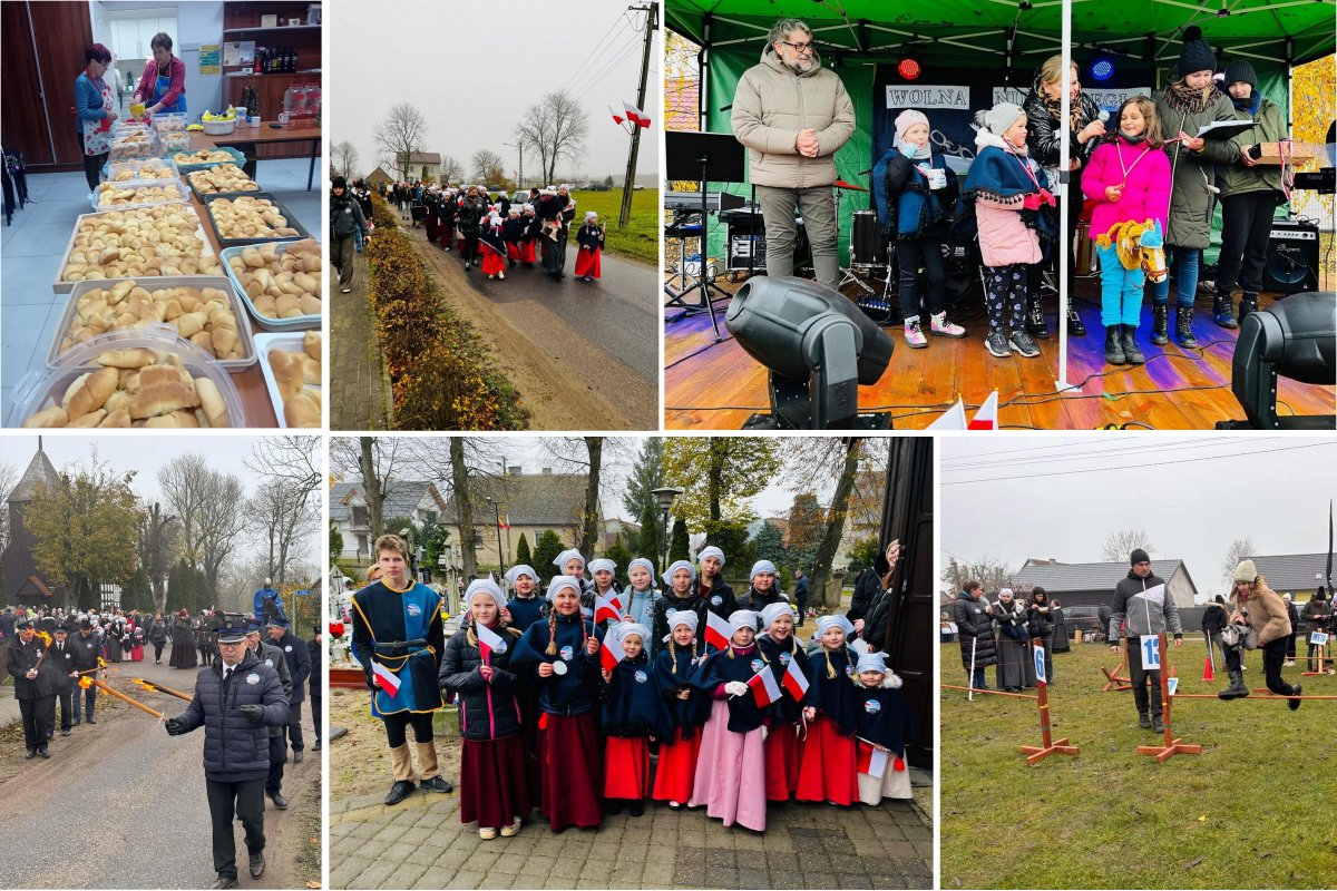 Po mszy nastąpił uroczysty przemarsz, który poprowadził werblista oraz, tradycyjnie już, Święty Marcin na koniu. Krótka inscenizacja pozwoliła przybliżyć postać patrona naszego kościoła, po niej przyszedł czas na część artystyczną, na nowej pięknie przystrojonej scenie. Wysłuchaliśmy wiązanki pieśni patriotycznych w wykonaniu seniorów pod dyrekcja zespołu Złote lata, a tuż przed sceną wystąpił zespół Ciechocińskie praczki z programem tańców średniowiecznych.