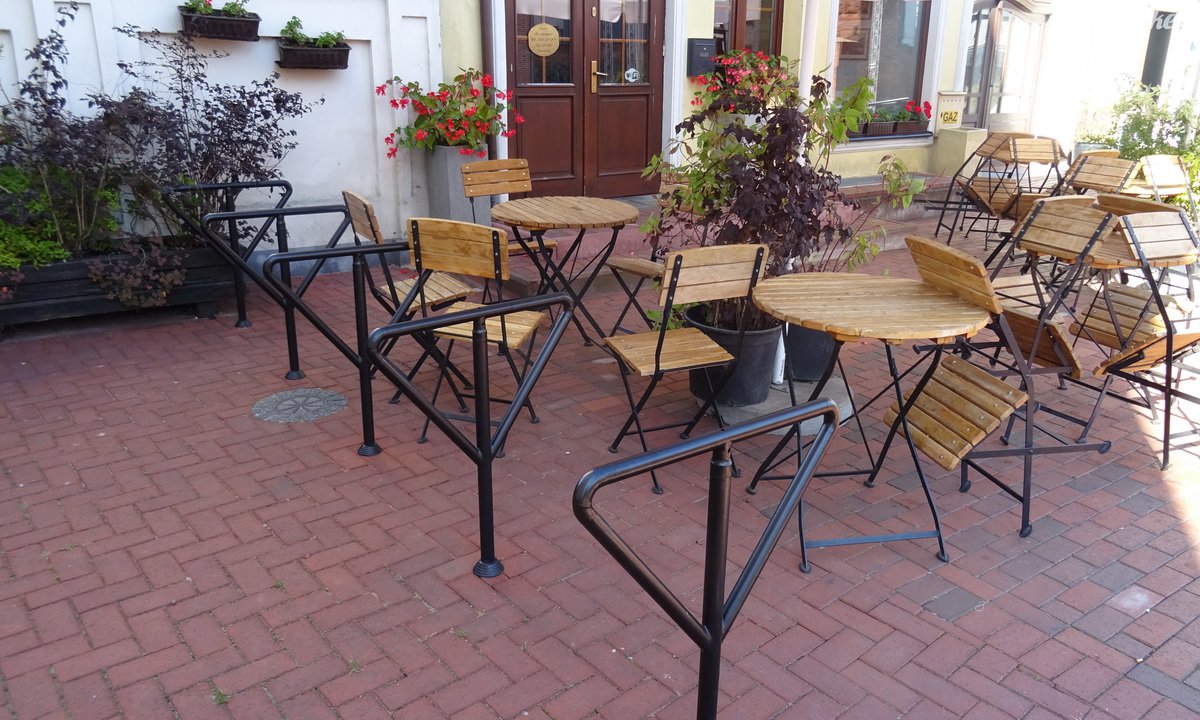 Obecnie tylko pięć stojaków postawiono obok krzesełek i stolików wystawionych przez jeden z lokali gastronomicznych przy Fosie. | fot. (je)