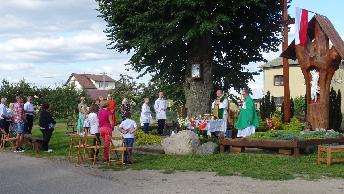 14 sierpnia 2023 10:38Wczoraj (13.08.) w Lotyniu odbyły się gminne uroczystości z okazji VI rocznicy tragicznej nawałnicy z 11.08.2017. Jak co roku rozpoczęły się od plenerowej Mszy św. w centrum wsi przy kapliczce projektu Jana Sabiniarza, w której wykorzystano drewno ze zniszczonego wówczas parku. Odprawił ją ks. proboszcz parafii w Nowej Cerkwi Jarosław Kaźmierczak, któremu asystował ks. Ryszard Ptak z Nieżychowic.