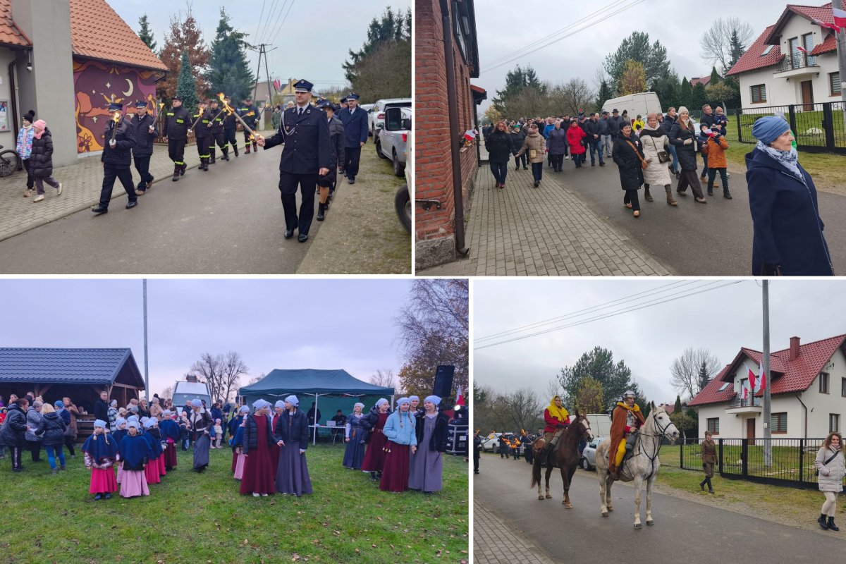 Przeszedł w rytmie muzyki ludowej. Za nimi w pochodzie kroczył św. Marcin na białym koniu – w tę rolę wcielił się Tadeusz Książek, symbolicznie okrywając płaszczem żebraka. Na boisku odbyła się część artystyczna: dzieci zaśpiewały piosenkę „Niepodległa” i przedstawiły scenkę o świętym Marcinie, a zespół „Ciechocińskie Praczki” oraz tancerze średniowieczni pod opieką Pani Darii Ciurzyńskiej wprowadzili widzów w klimat dawnych epok.