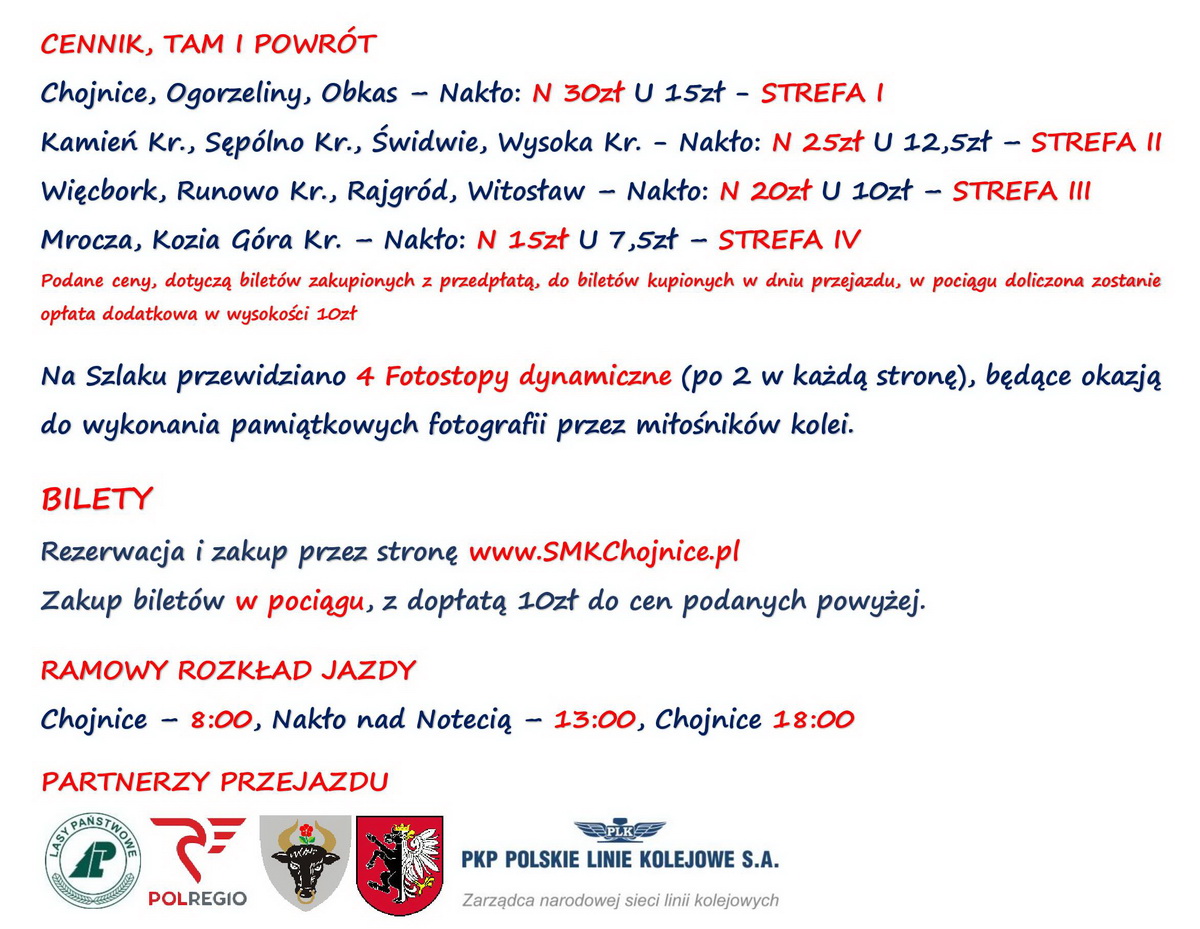 Chojnickie Stowarzyszenie Miłośników Kolei informuje mieszkańców regionu, o zaplanowanym przez stowarzyszenie Pociągu Specjalnym relacji Chojnice - Sępólno Krajeńskie - Więcbork - Nakło nad Notecią - Więcbork - Sępólno Krajeńskie - Chojnice.