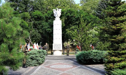 1 września 2015 15:38W samo południe 1 września złożyli kwiaty przed Pomnikiem Orła, usytuowanym przed Cmentarzem Ofiar Zbrodni Hitlerowskich. Inskrypcja informuje, iż pomnik jest poświęcony "Poległym i ofiarom faszyzmu hitlerowskiego w latach 1939 - 1945.