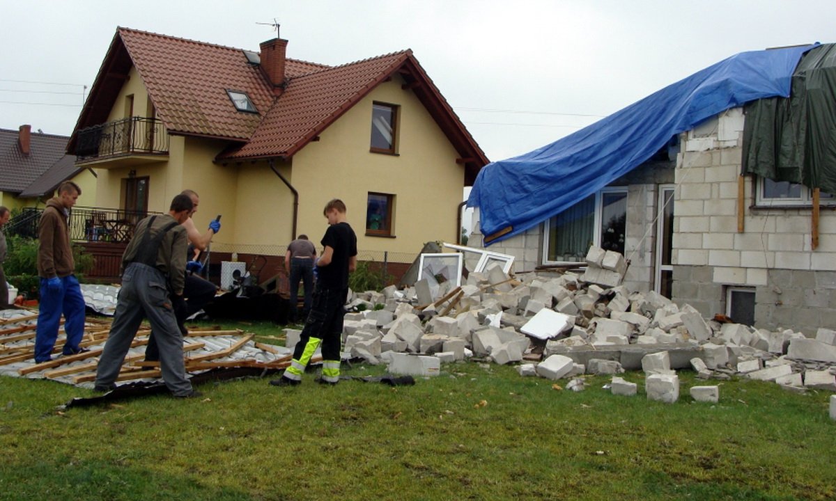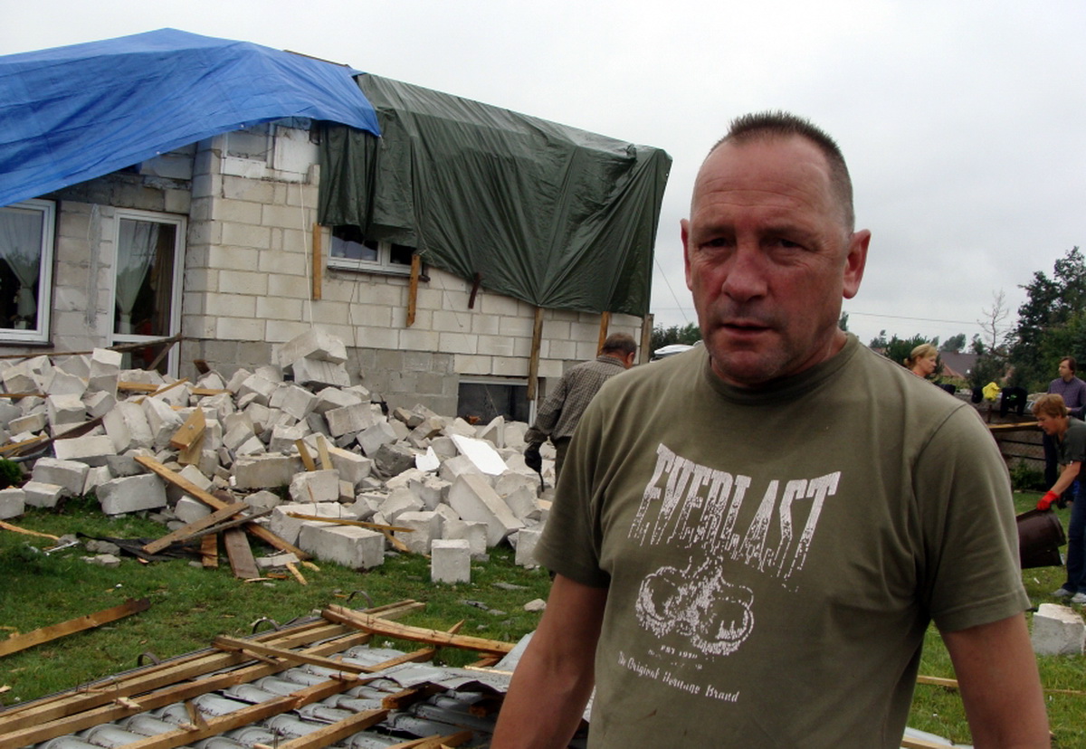 - Widzieliśmy, że szleje burza. Błyskało się i coraz silniej wiało. Po godz. 22 usłyszeliśmy huk, słabszy, później mocniejszy, a na końcu bardzo mocny i wtedy na dół, na parter domu spadły przez schody pustaki. Spojrzeliśmy w górę i okazało się że w jednej chwili nie mieliśmy piętra i dachu. Do domu wlewała się woda, wycieraliśmy ją przez cały czas. To wielka tragedia dla naszej rodziny.