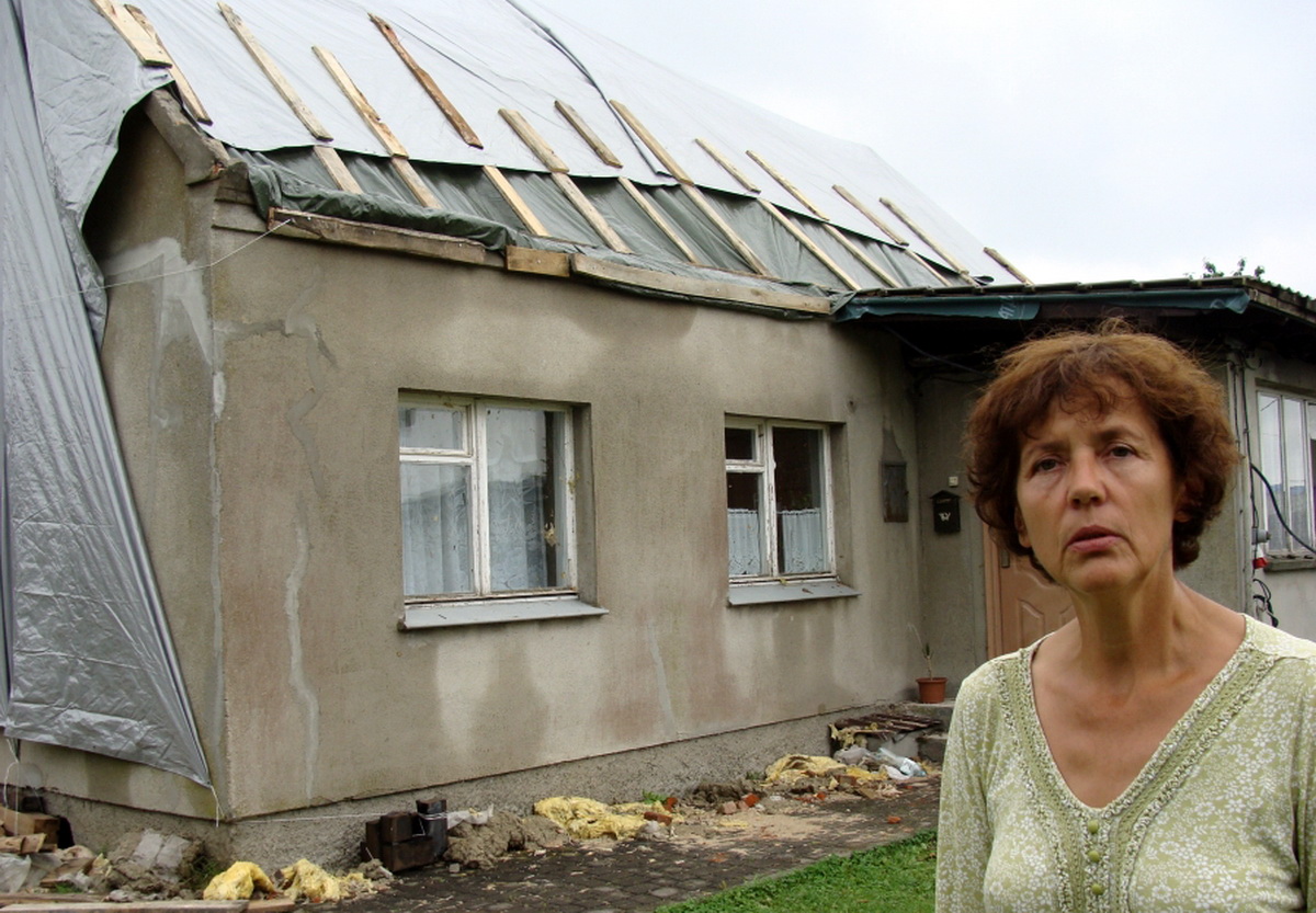 - Gdybym była wtedy w domu, pewnie już by pan ze mną nie rozmawiał. Zniszczenia są ogromne. Szczyt budynku wpadł na poddasze, gdzie jest pokój i kuchnia. Jedna część dachu spadła na podwórko, druga dalej. Nie mam pieniędzy na odbudowę, mam ubezpieczenie, ale nie jest za duże. Proszę o pomoc osoby, które zechciałby mi przekazać materiały budowlane – mówi samotnie mieszkająca Ewa Gładka (na zdjęciu) z ul. Chojnickiej w Rytlu.