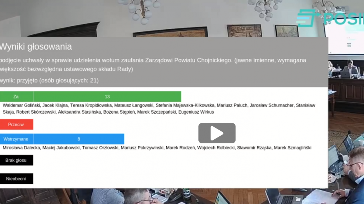 Uchwałę o udzielenie Votum zaufania poparło 13 radnych, 8 wstrzymało się, nikt nie był przeciw. Więcej można znaleźć w już dostępnym zapisie video z wczorajszej transmisji na stronie Powiatu.