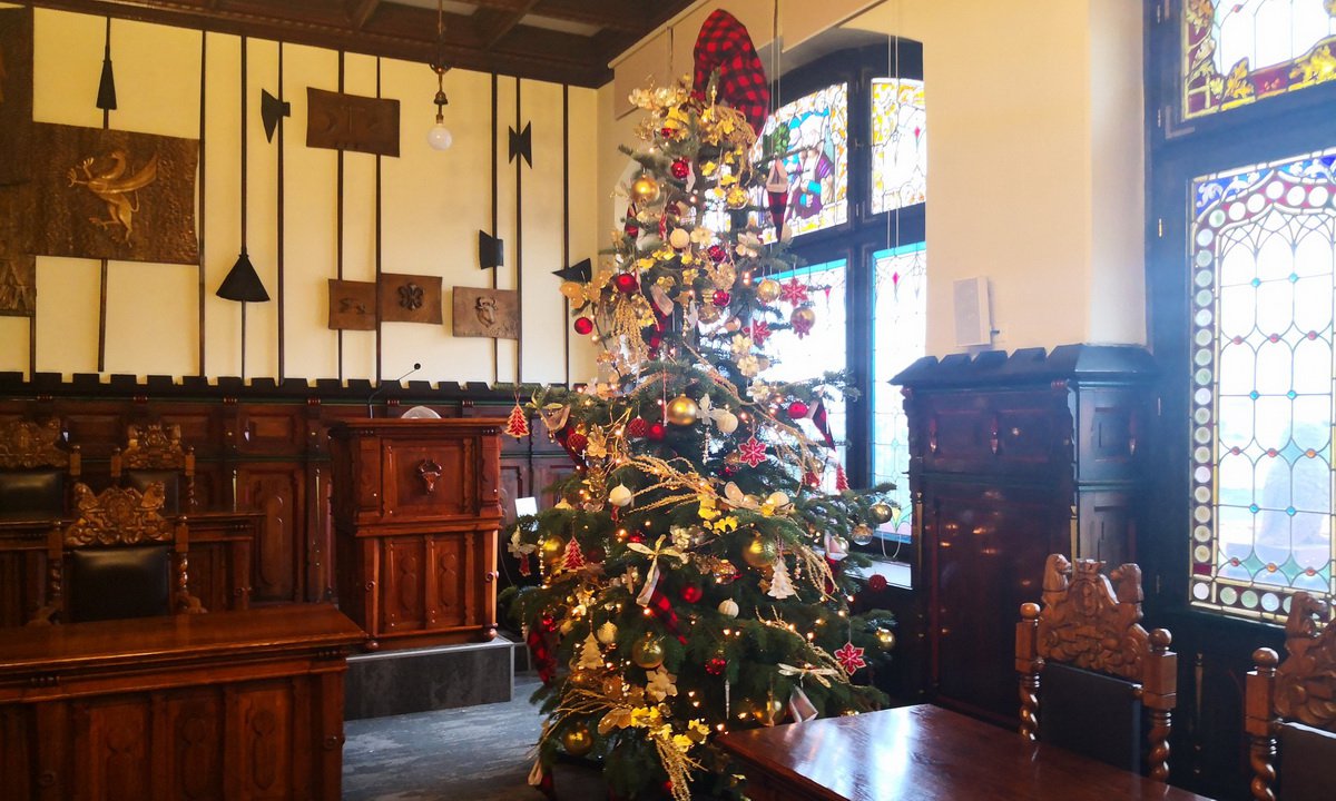 Świątecznie zrobiło się w Sali Obrad. Ozdoby na choinkę tradycyjnie wykonali podopieczni WTZ Chojnice. | fot. Fb. UM Ch-ce
