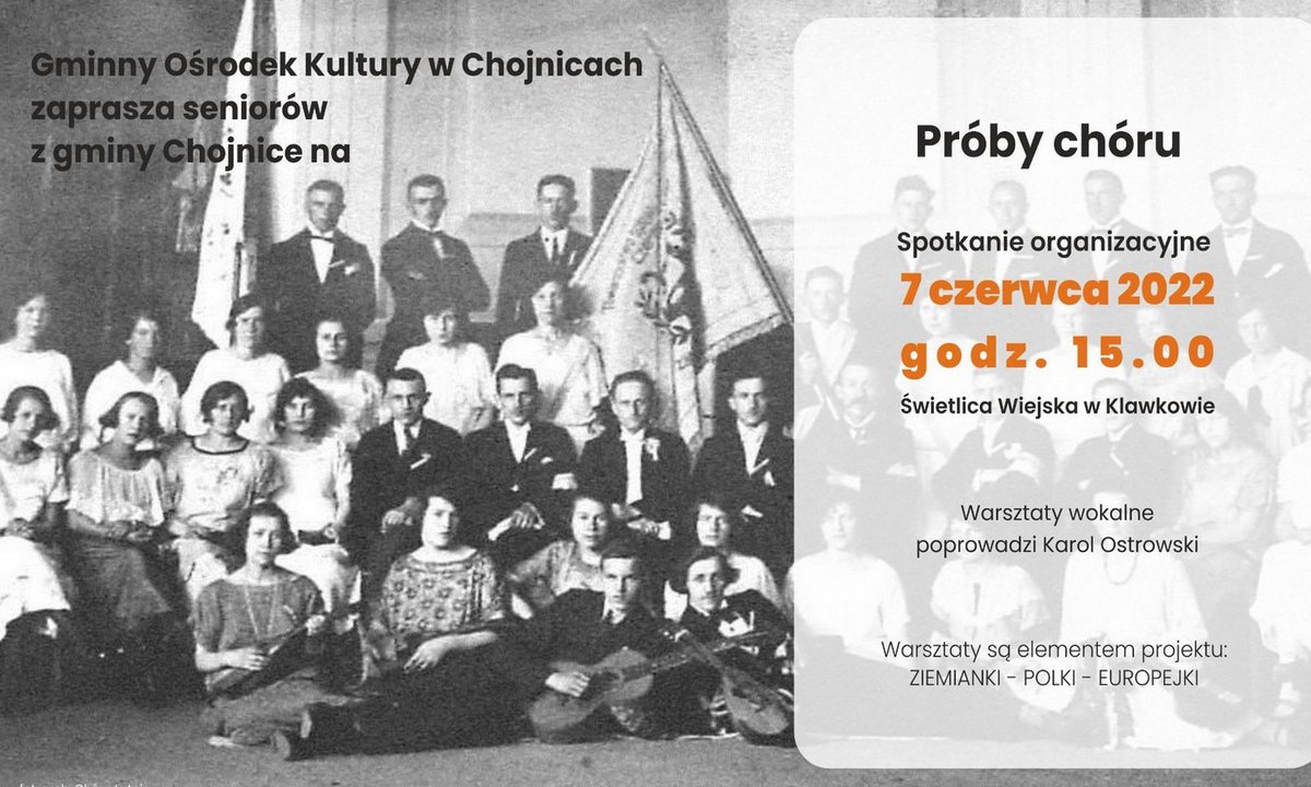 W świetlicy w Klawkowie, przez cały sezon letni, odbywać się będą warsztaty taneczne, plastyczne i próby chóru. Umiejętności zdobyte na zajęciach ich uczestnicy wykorzystają we wrześniu, podczas obchodów Europejskich Dni Dziedzictwa. Już teraz zapraszamy dorosłych mieszkańców regionu na spotkanie organizacyjne dotyczące zajęć wokalnych i prób chóru – 7 czerwca o godzinie 15.00 w świetlicy w Klawkowie.