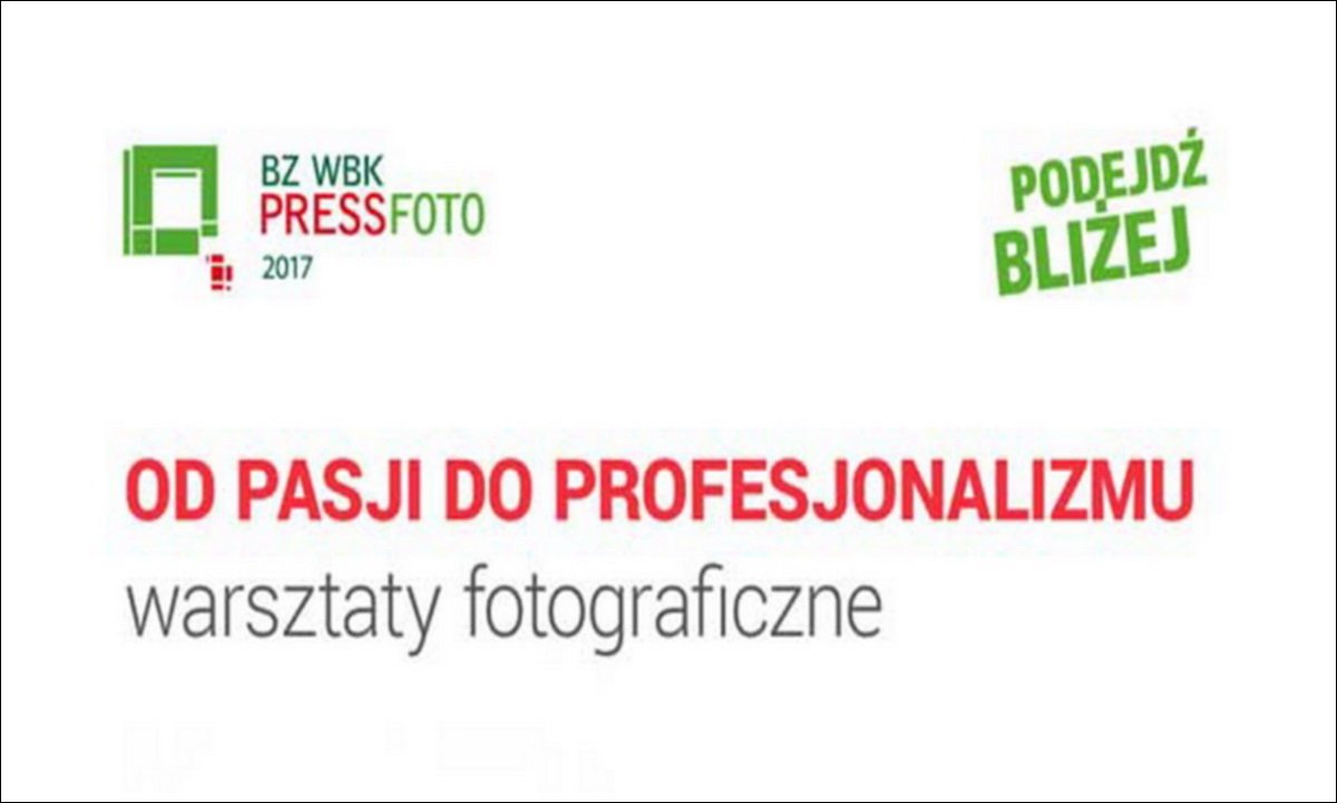 Udział w warsztatach jest bezpłatny. Liczba miejsc ograniczona. Zgłoszenia: biuro@bzwbkpressfoto.pl www.bzwbkpressfoto.pl Zapraszamy!