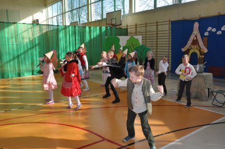 Uczniowie przybliżyli gościom fragmenty znanych bajek. Dzieci dowiedziały się od starszych kolegów, co kryją szkolne mury. Nie mogło oczywiście zabraknąć akcentu kaszubskiego, bowiem najmłodsi uczniowie naszej szkoły mają możliwość nauki tego języka. Tańcom i śpiewom nie było końca.