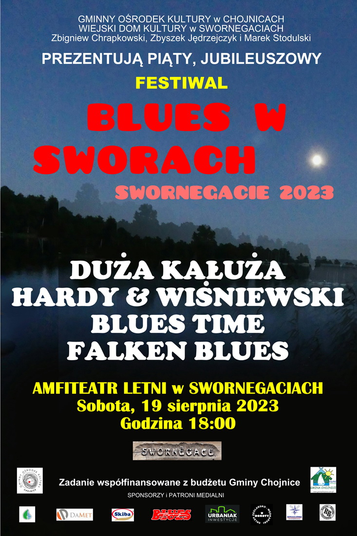 Jest gotowy program V edycji Festiwalu „Blues w Sworach”. Tradycyjnie odbędzie się w Amfiteatrze Letnim w Swornegaciach w sobotę 19.08 od 18.00. Jego organizatorami są GOK Chojnice, WDK Swornegacie, Z.Chrapkowski, Z.Jędrzejczyk i M.Stodulski.
