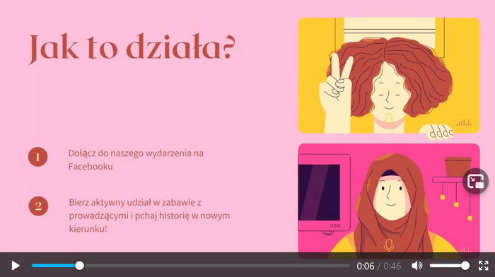 Dwie wolontariuszki wcielą się w role narratorek opowiadających historię, którą tworzyć będą widzowie. Jak? Podczas transmisji na żywo oglądający będą mogli pisać w komentarzach słowa, które dziewczyny wplotą w historię. W ten sposób wpłyną oni na przebieg opowieści.
