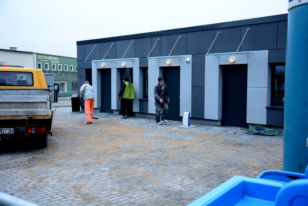 Dokonano ostatnich odbiorów na terenie inwestycji przy ulicy Młodzieżowej, Pochłonęła ona ponad 5 mln 300 tys. zł. W listopadzie pracę pod wiatą rozpoczęli handlujący. Od minionego weekendu do dyspozycji sprzedających i handlujących jest m.in. toaleta.