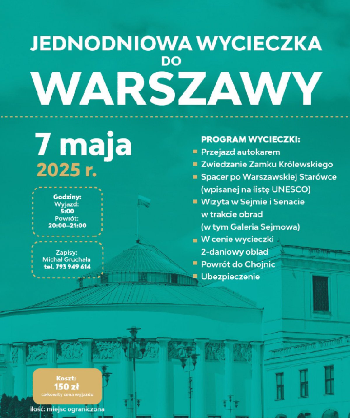 Stowarzyszenie „Chojnice – Tu Bije Moje Serce” i „Chojnicki Dialog” organizuje 7 maja wyjazd na jednodniową wycieczką autokarem do Warszawy.