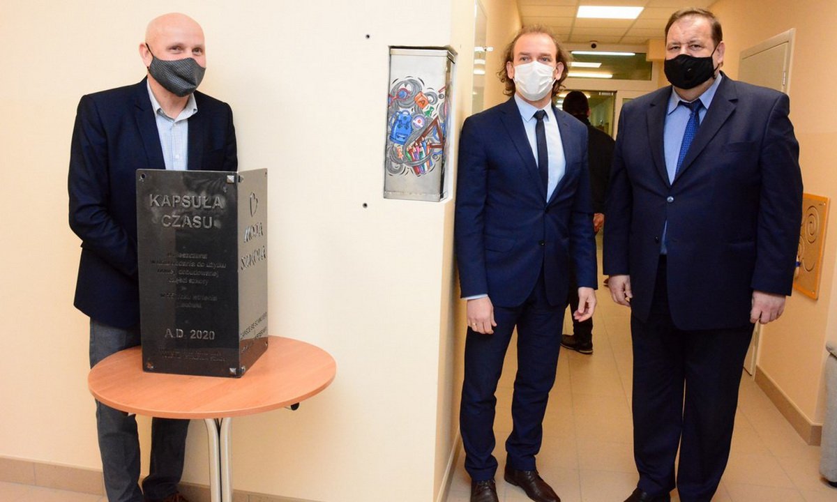 - Kapsuła będzie się znajdowała w tej nowej części budynku, z myślą o 100-leciu, które będzie za 45 lat. Budując szkołę nie wmurowaliśmy węgla kamiennego, Tę rolę można powiedzieć, że będzie teraz pełniła owa kapsuła czasu - poinformował Jan Gliszczyński. - Dodam może jeszcze, że w kapsule, dla żartu, jest też kilka ulotek handlowych. Żeby za 45 lat ludzie wiedzieli jakie teraz były ceny w sklepach - dodał ze śmiechem dyrektor placówki.