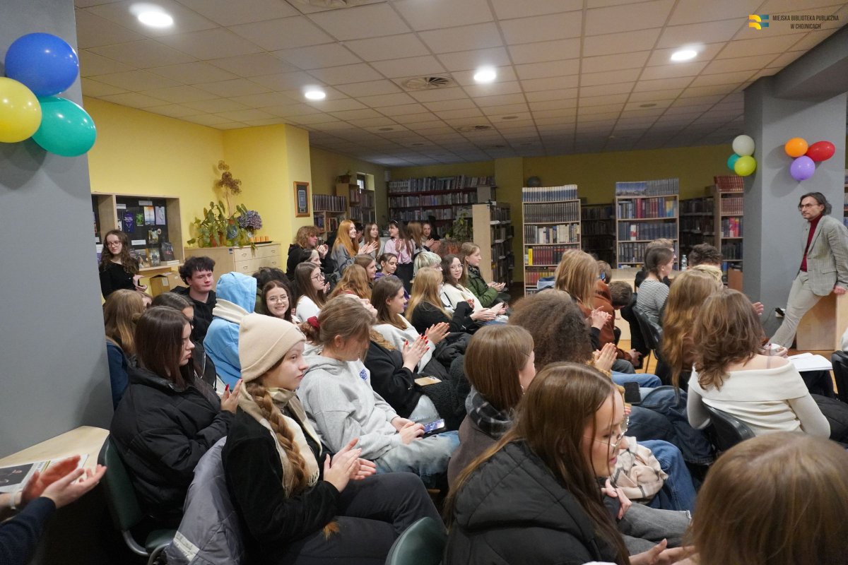 Do Czytelni MBP w Chojnicach przyszli uczniowie II Liceum Ogólnokształcącego im. gen. Władysława Andersa w Chojnicach, żeby wysłuchać wykładu o poecie ks. Januszu Stanisławie Pasierbie.