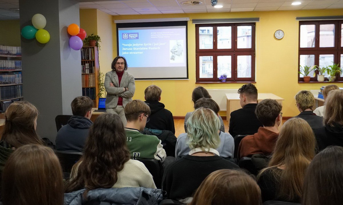 Prelegentem był dr hab. Tomasz Tomasik, prof. Uniwersytetu Pomorskiego w Słupsku, katedry Filologii Polskiej. 15 grudnia przypadała 31. rocznica śmierci Janusza Stanisława Pasierba (1929-1993) – księdza katolickiego, poety i eseisty, historyka, znawcy sztuki i kultury. Jak zauważył na wstępie wicedyrektor MBP Przemysław Zientkowski, wykład został zorganizowany dla upamiętnienia tej rocznicy. O poecie mówił licealistom dr hab. Tomasz Tomasik, który jest historykiem literatury i filologiem. Wykład zatytułowany był „»twoje jedyne życie / już jest« – Janusz Stanisław Pasierb jako streamer”.
