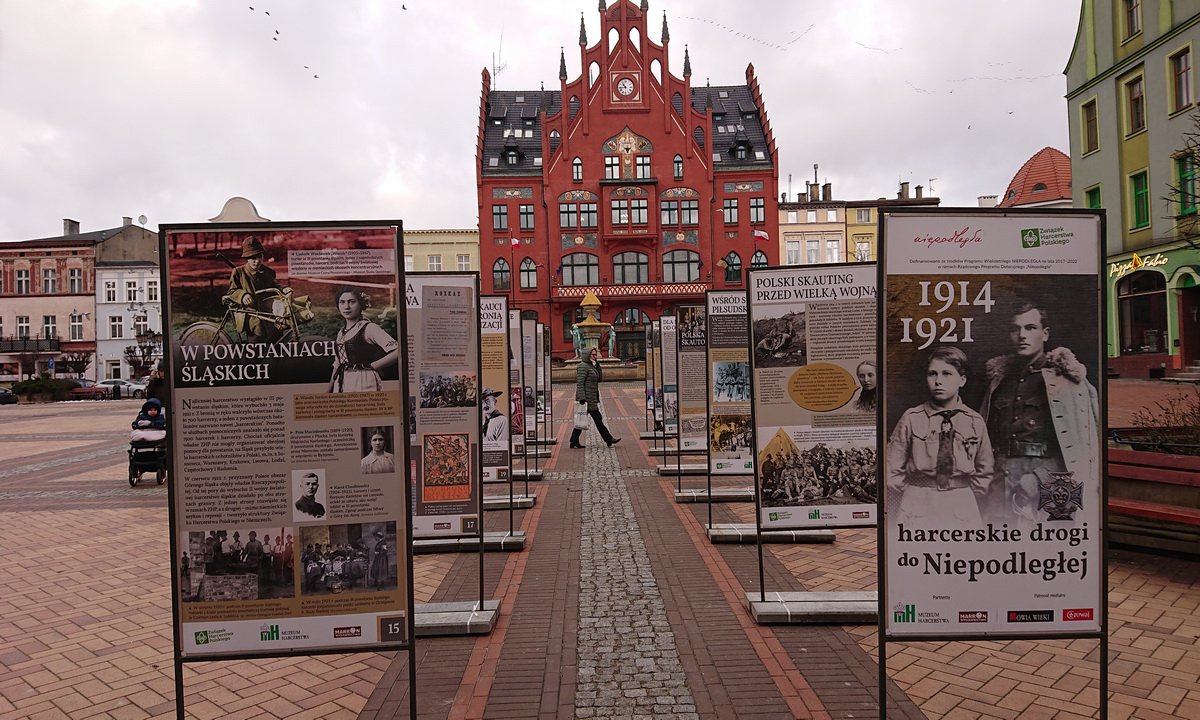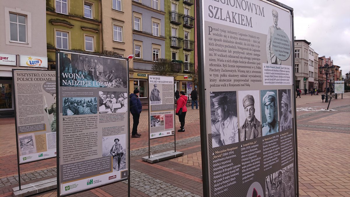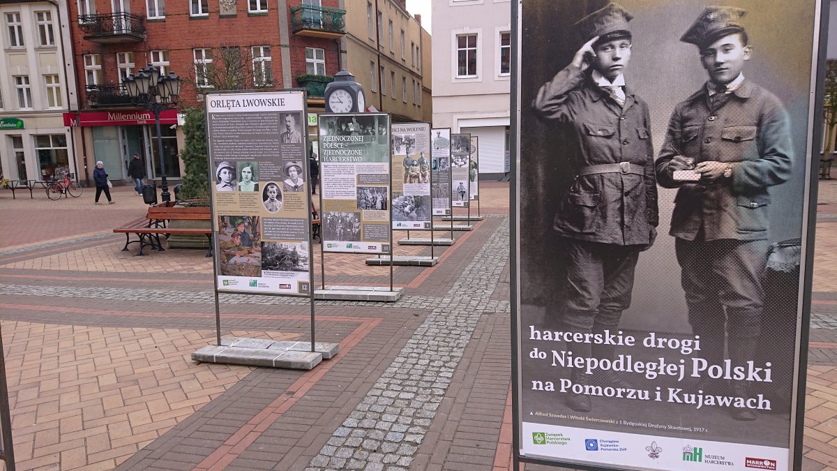Zespół Historyczny Hufca ZHP Chojnice z pomocą harcerzy z 42 Chojnickiego Szczepu Harcerskiego "Wicek" postawił na płycie Starego Rynku w Chojnicach wystawę plenerową "Harcerskie Drogi do Niepodległości".