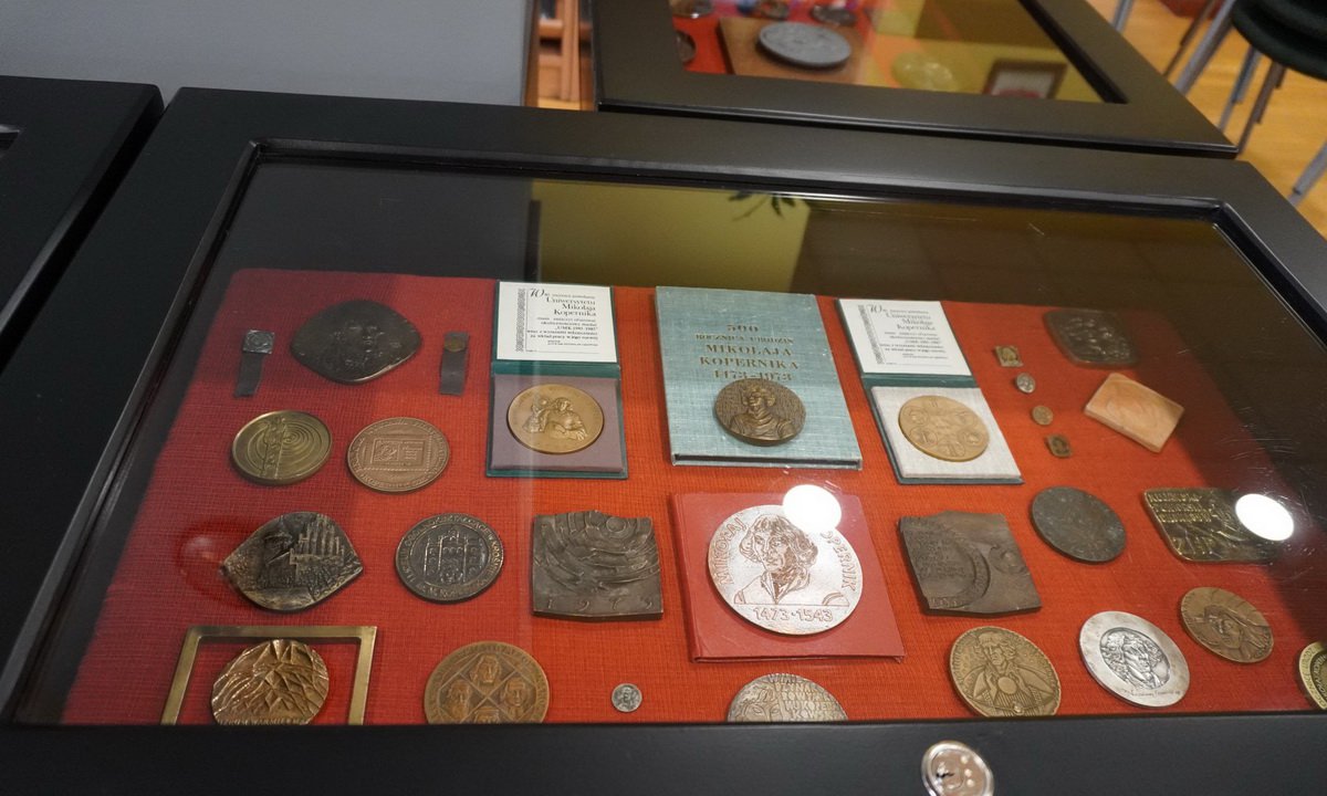 19 lutego 2025 09:28Mikołaj Kopernik (1473-1543) był astronomem, kanonikiem, prawnikiem, matematykiem, lekarzem i ekonomistą. W ustawionych w Czytelni trzech gablotach eksponowane są medale, plakiety i medaliony z wizerunkiem Kopernika, wybite z okazji rocznic urodzin lub śmierci astronoma, jubileuszy towarzystw kopernikańskich, jubileuszy miast, m.in. Torunia, oraz z okazji odsłonięcia pomników lub założenia muzeów.