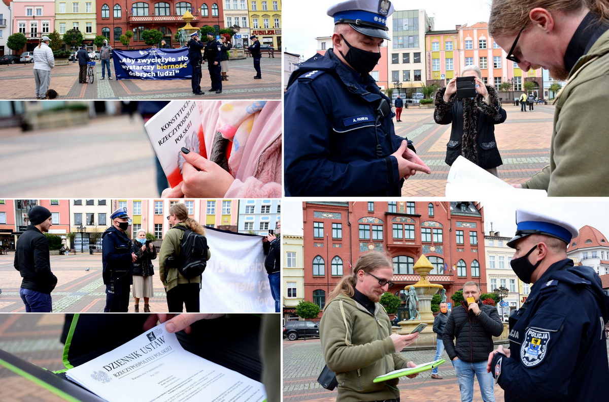 Wywiązała się dyskusja o wyższości ustawy nad rozporządzeniem oraz słowna przepychanka o tym jak są formułowane przepisy i jak winno się je interpretować. W międzyczasie na Starym Rynku pojawiły się cztery osoby popierające „pikietujących” oraz kilku przechodniów zainteresowanych interwencją policji.