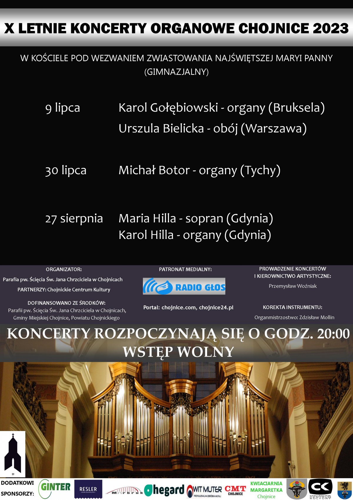 Zapraszamy na „X Letnie Koncerty Organowe Chojnice 2023” do Kościoła Gimnazjalnego. Pierwszy koncert odbędzie się w niedzielę 9 lipca o godz. 20:00 w wykonaniu: Karol Gołębiowski - organy (Bruksela) i Urszula Bielicka- obój (Warszawa).