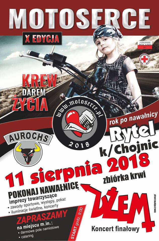Coroczna akcja zbiórki krwi organizowana przez Aurochs FG w tym roku odbędzie się 11 sierpnia w miejscowości Rytel. Data ta nie została wybrana przypadkowo. W tym dniu minie rok od nawałnicy, która nawiedziła nasz region i poczyniła ogromne straty.