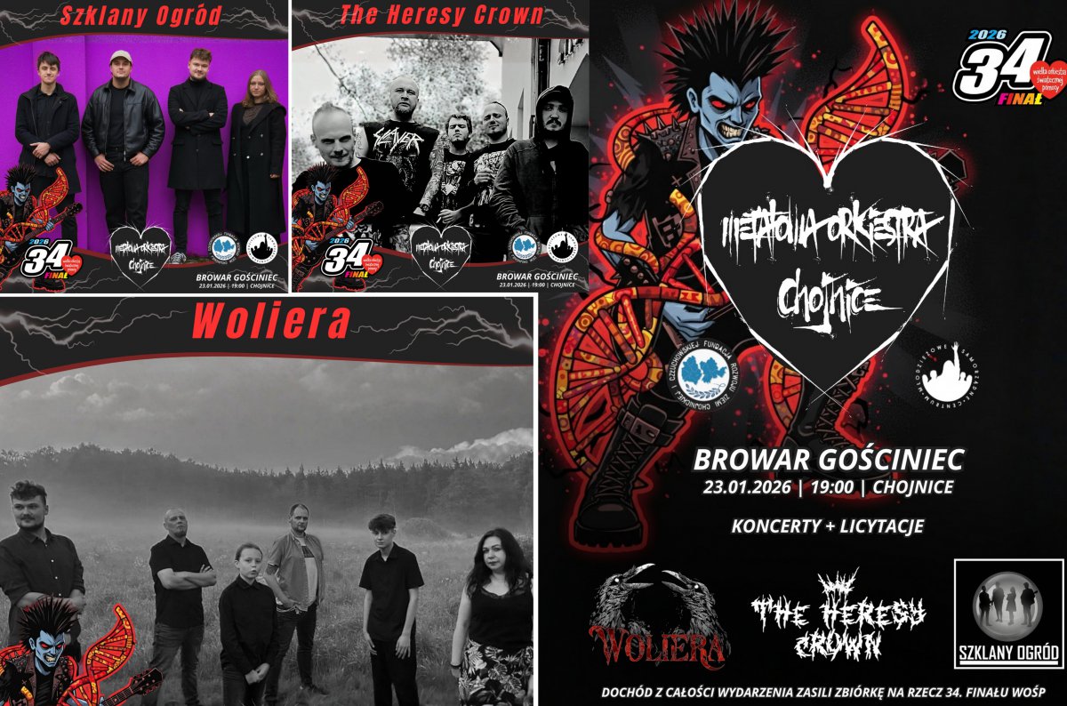 12 stycznia 2026 10:06Publiczność rozgrzeją trzy zespoły znane z mocnych występów na żywo. WOLIERA z fenomenalnym 11-letnim Marcinem na wokalu, THE HERESY CROWN kwintesencja surowej energii i szybkiego tempa i SZKLANY OGRÓD z nieoczywistym połączeniem rocka z funkiem i jazzem.