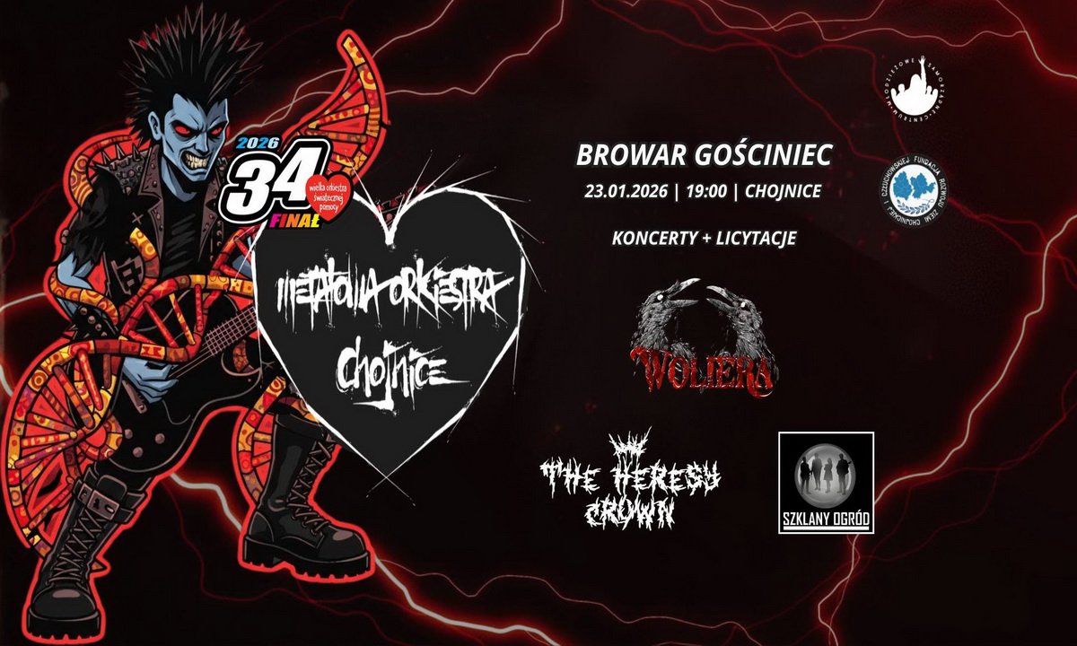 Między koncertami czekają nas gorące licytacje, z których każdy grosz zasili konto WOŚP. Niezależnie od tego, czy kochasz ciężkie brzmienia, czy po prostu szukasz wydarzenia z niesamowitą energią i misją - Metalowa Orkiestra to miejsce dla Ciebie. Organizatorem tego pozytywnego zamieszania jest Fundacja Rozwoju Ziemi Chojnickiej i Człuchowskiej wspierana przez przyjaciół.