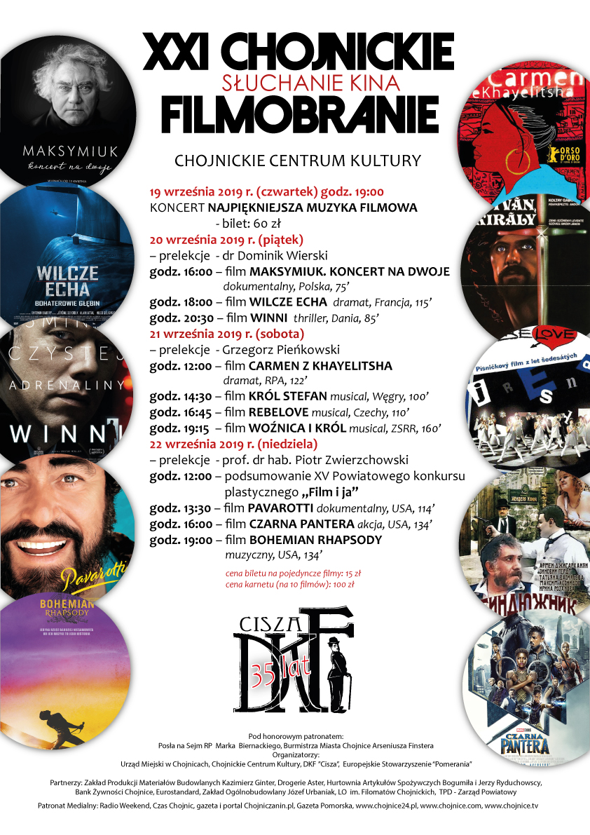 Organizatorzy:Urząd Miejski w Chojnicach, Chojnickie Centrum Kultury, DKF "Cisza", Europejskie Stowarzyszenie "Pomerania"