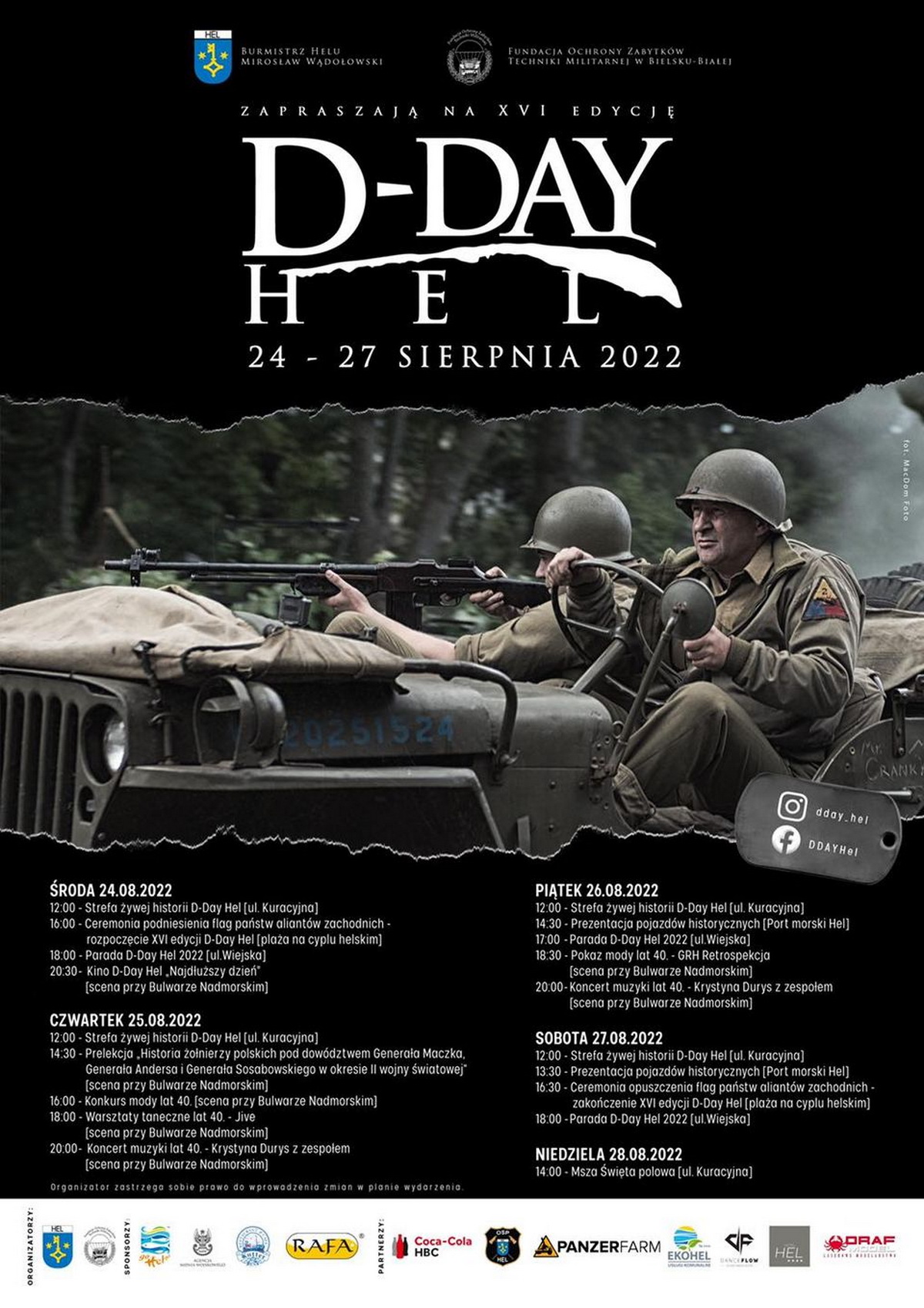 Tym razem ruszamy na półwysep Helski do Jastarni i Helu. Trzeba tylko odświeżyć mundury, zatankować pojazdy i w drogę - trochę ponad 200 km przed nami. 24 sierpnia 2022 r., po raz szesnasty, Hel zamieni się w Helville - francuskie miasteczko, które na własnej skórze doświadczyło pamiętnych wydarzeń w 1944 r. D-Day Hel jest imprezą historyczną organizowaną przez Fundację Zabytków Techniki Militarnej z Bielska-Białej, Gminę miejską Hel oraz Grupy Rekonstrukcji Historycznej z całego kraju.