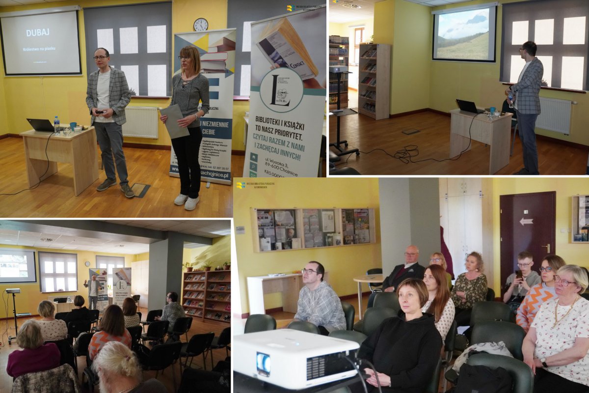 Miejską Bibliotekę Publiczną w Chojnicach odwiedził Piotr Kowalczyk – podróżnik, fotograf, publicysta i bloger, którego przywitała i przedstawiła bibliotekarka Anna Maria Zdrenka. Dzięki opowieści „Dubaj: królestwo na piasku” słuchacze mogli przenieść się do Zatoki Perskiej bez wychodzenia z bibliotecznej sali. Kowalczyk był w ZEA wielokrotnie, m.in. jako pilot wycieczek i organizator indywidualnych wypraw. Dzięki temu mógł doradzić obecnym, jak w praktyce zaplanować wyjazd: gdzie szukać biletów lotniczych, w jakich miesiącach są one najtańsze, kiedy pogoda jest najlepsza na zwiedzanie, ile pieniędzy przeznaczyć na nocleg, a ile na bilet metra.