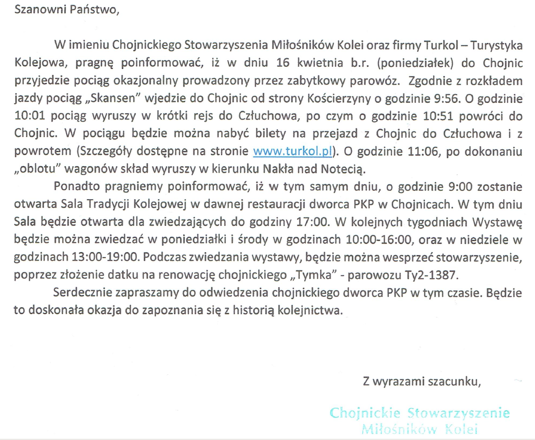 16 kwietnia miłośnicy pociągów retro będą mieli nie lada atrakcję. W tym dniu na stacji w Chojnicach pojawi się zabytkowy polski parowóz serii Ol49 z wolsztyńskiej parowozowni.