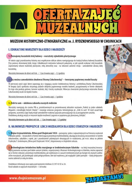 Muzeum Historyczno - Etnograficzne im. Juliana Rydzkowskiego w Chojnicach przygotowało ofertę na temat zajęć edukacyjnych dla dzieci i młodzieży organizowanych w chojnickim muzeum.