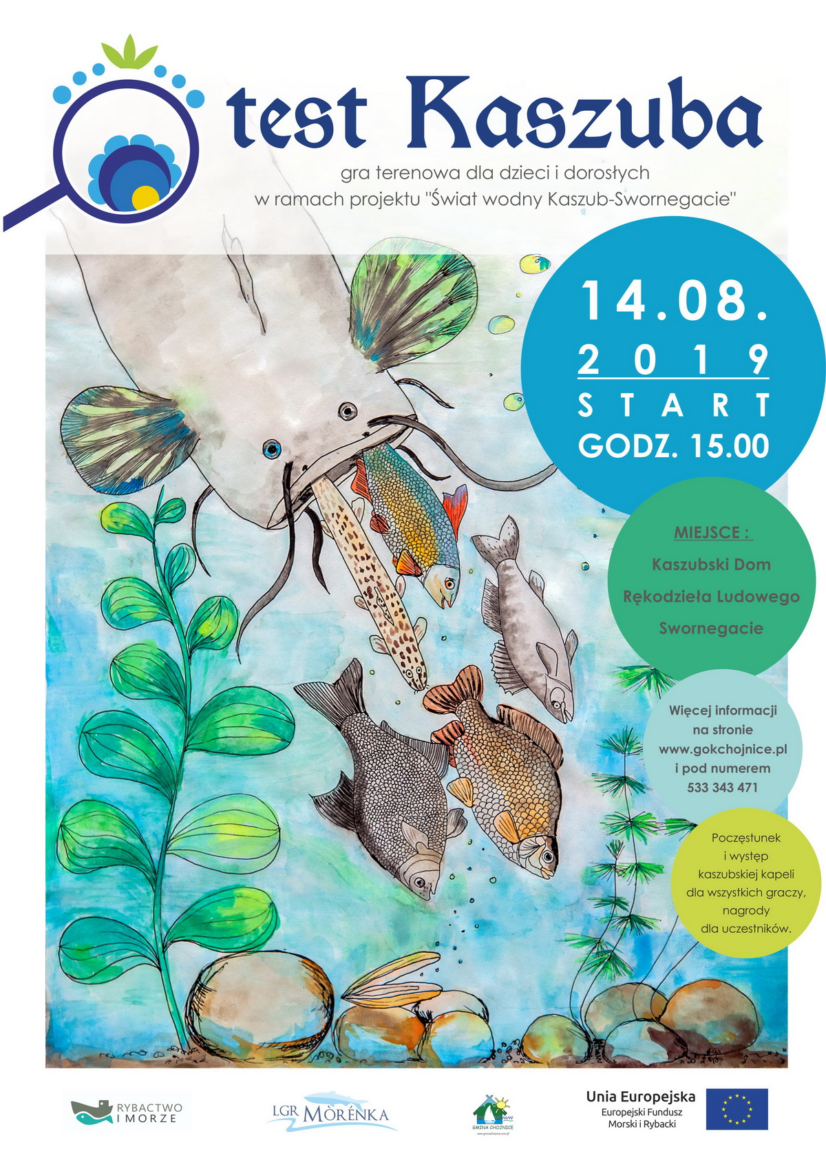 Operacja pn.: „Świat wodny Kaszub – Swornegacie” jest współfinansowana ze środków pochodzących z Europejskiego Funduszu Morskiego i Rybackiego w ramach Programu Operacyjnego „Rybactwo i Morze”.