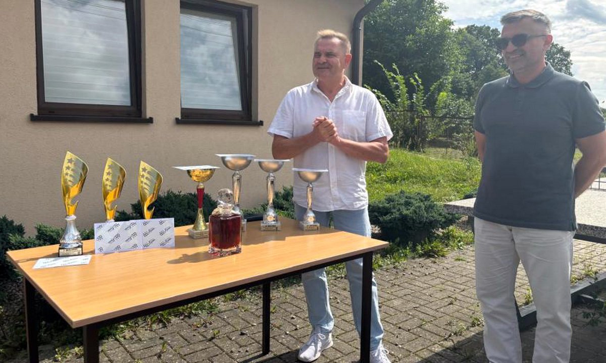 Pamiątkowe puchary, vouchery do sklepu wędkarskiego i gratulacje złożył zwycięzcom w imieniu starosty powiatu chojnickiego Mariusz Paluch. | fot. UM Czersk