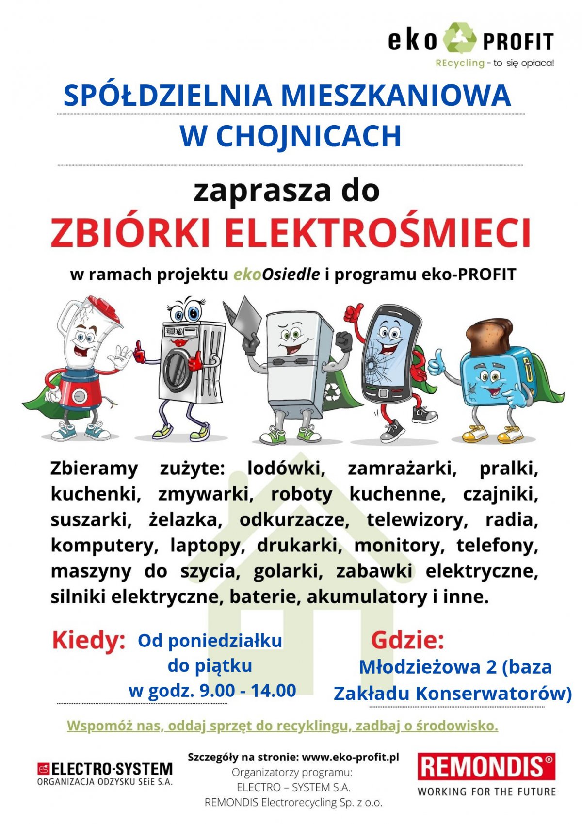 Spółdzielnia Mieszkaniowa w Chojnicach organizuje zbiórkę elektrośmieci. Mieszkańcy mogą pozbyć się zużytego sprzętu elektrycznego i elektronicznego w wyznaczonych terminie i miejscu.