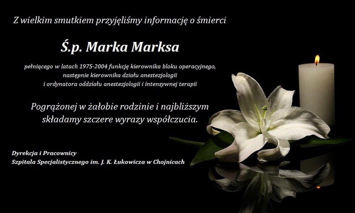 16 stycznia w wieku 91 lat zmarł Marek Marks, wieloletni lekarz szpitala w Chojnicach. W 1961 r. ukończył wydział lekarski na Akademii Medycznej w Szczecinie i tego samego roku rozpoczął pracę jako lekarz w chojnickim szpitalu.